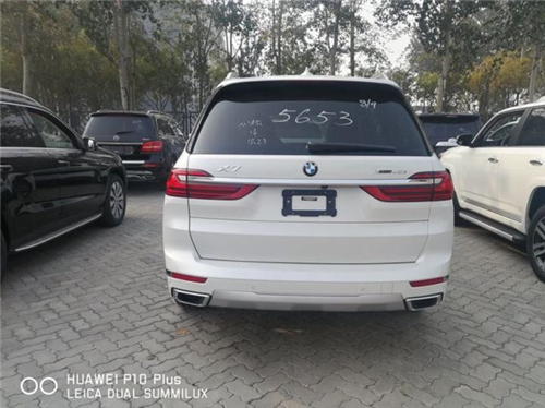 2019款全新的宝马X7采用了全新的设计语言,对于宝马经典的双肾进气格栅,在面积上扩大了很多,几乎占据了X7的整个车头,看起来十分霸气,而且X7对前脸大灯组还进行了升级,车头大灯采用的是矩阵式激光大灯,无论是视觉上还是照明度上都得到了很大的提升,因为是7座车,X7的车身侧面看起来非常长而且厚重,有些类似于路虎的设计风格,大量的平直线条装饰着X7的车身,让这款车的霸气程度提升了很多,车尾的设计则是非常简洁,车标下一条贯穿式的镀铬饰条将车尾一分为二,层次感比较分明,尾部排气造型为双边单出式排气,具有一定的运动感。