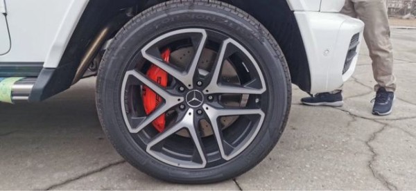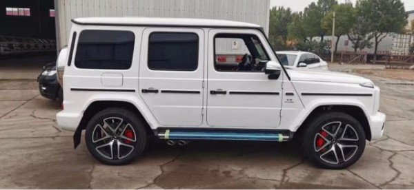 19款奔驰G63 (配置|询价) 全新的直瀑式进气格栅可以说是家族最新的设计风格,也是在新车外观造型上与奔驰系列产品差异化最明显的地方。,进 一步提升了它外观造型的彪悍程度。展车不仅采用了全新的车身涂装,还搭配了红色的轮圈装饰,更加个性。新G63保留了新G500的整体设计,除配色差异外,新车还换装了全新造型的平底式AMG运动方向盘,其两侧配以打孔皮质包裹,下部镀铬装饰的造型也与新G500明显不同,看上去十分战斗。此外,全液晶 仪表盘+中控大屏的双12.3英寸屏幕设计在新车上也没有缺席,营造出了浓郁的科技感。