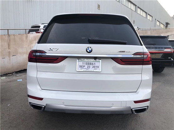 19升级版宝马X7,黑色/棕色6座,黑色蓝宝石金属/Vernasca真皮,豪华增强包,M运动包,宝马激光车头灯,水晶手柄,宝马显示钥匙,旅行舒适系统,22英寸V轮,白杨装饰,生产日期:2019年3月大型豪华包(电动遮阳板,冷热杯托,前排舒适座椅,泊车辅助,360环形阴影,电动吸气门升降显示屏5区空调远程启动泊车辅助加热方向盘交通辅助三排天窗三排座椅加热)M运动包(M运动制动M运动排气M空气动力学套件M运动套件22英寸M运动车轮M运动方向盘)