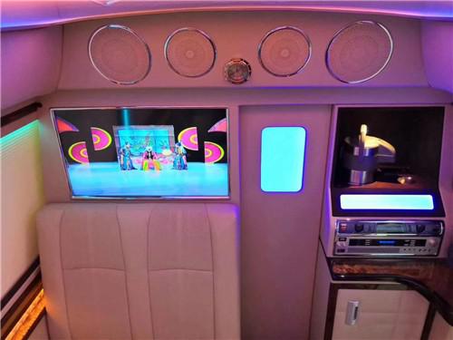 电动座椅、整车实木地板(地毯)、通道LED灯光、豪华高级办公桌(桃木+真皮)、豪华固定秘书桌、影音系统、220V电源插座、冷热毛巾消毒柜、进口侧开门冰箱、隐藏式不锈钢雨伞柜、豪华空客A380多彩顶灯、5.1声道高音喇叭、阿尔派低音喇叭、AV系统32寸车载专用显示器、豪华电动百褶窗帘豪华全隔断、空气净化器等等。