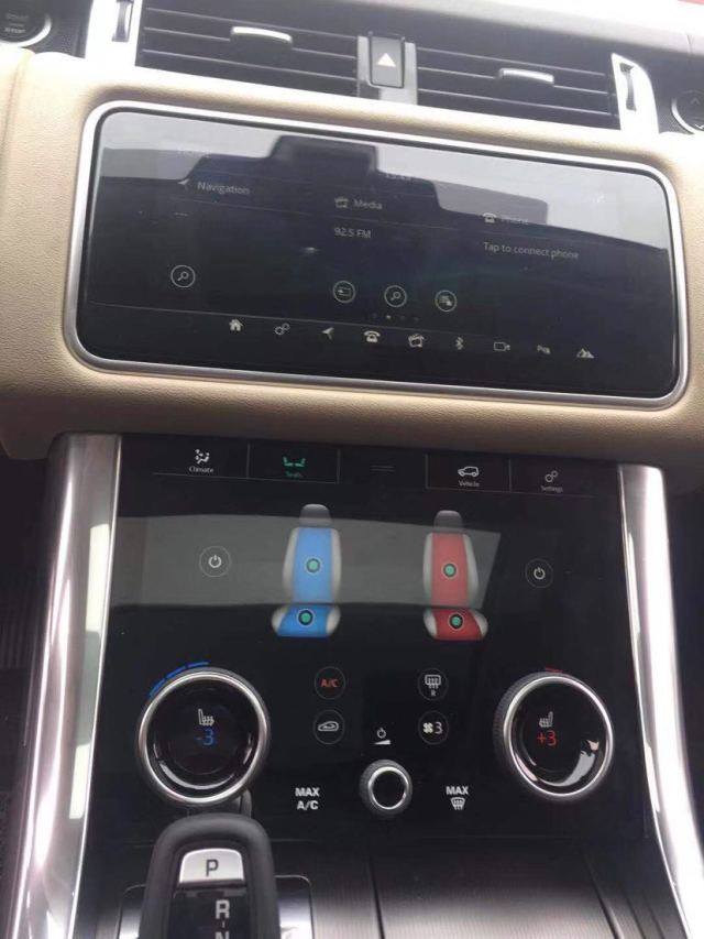 揽胜运动版中控区域采用了全新设计的触控液晶屏,并匹配Touch Pro Duo信息娱乐系统,功能十分强大,而倒车及车侧影响、自动泊车辅助等也都可以在上面进行操作。而空调区域的变化则最为明显,该区域将此前的按键及旋钮的操控改为全液晶屏触摸式操控,大大提升了内饰十足的科技感。路虎揽胜 (配置|询价)运动版还为后排提供了10英寸的显示屏,方便后排乘客也能享受车内的娱乐系统。