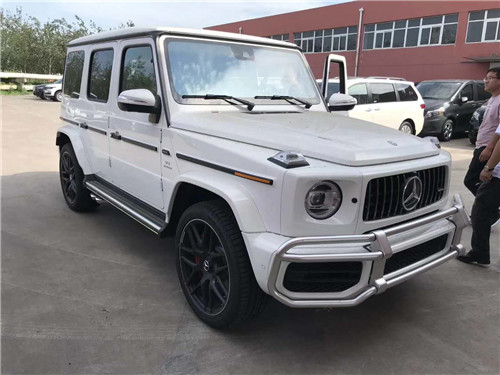 2019款奔驰G63的前格栅造型和21寸的轻质AMG车型专属铝合金轮毂更加抢眼。2019款奔驰G63采用AMG车型特有的轮拱饰条、不锈钢迎宾踏板以及不锈钢防擦条,挡泥板上的“V8 BITURBO”标识以及后门上的“G 63 AMG”铭牌也十分醒目。
