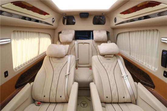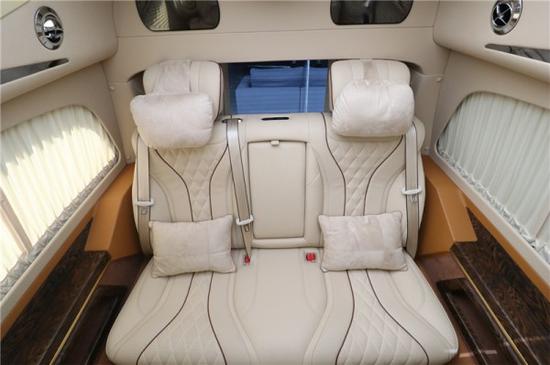 国六奔驰V260L七座mpv商务车二排采用航空级总裁座椅,拥有座椅加热、通风、按摩、腿托功能,总共拥有10项座椅调节,另外再搭配实木地板,为整个乘坐舱内带来大气,温馨的色彩。整车防紫外线隔热玻璃能够有效阻挡夏日强光,两侧隐私电动窗帘搭配盘绕车内的窗帘让你享受静谧的私人领域,而带遮光帘的天幕式全景天窗,营造通透大气的车内空间。
