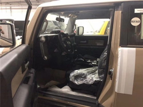 硕大的丰田logo,圆圆的头灯、大面积的前保险杠以及对开式的车门都是FJ酷路泽独特于所有同级别硬派越野车的地方。这样一款外观看着和land