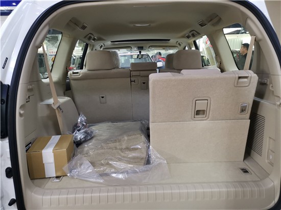 19款丰田霸道4000虽然采用七人座的设定,但一样拥有相当宽敞的乘用空间,车内的电子设备也增加了很多,满足驾乘者全方位用车需求,而后排的中央扶手和第三排左右两侧内衬板都很体贴的提供了杯架。后备箱的开口有两个,后风挡玻璃可以打开,放一些小东西不必打开宽大的尾门。侧开式的尾门虽然在拿取东西的时候非常方便。