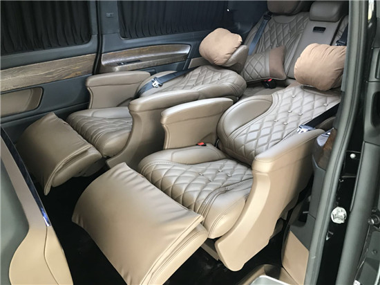 进口奔驰V250改装迈巴赫VS680凭借行政座椅,前排乘客侧的后排乘客即使在长途行车中也能够完全放松。仅需按下一个按钮,便可将座椅设置到舒适的角度,最大倾斜角度为 43.5 度。一个附加的伸出式腿部支撑进一步增强了舒适性。配备电动可伸出式脚踏板时,能够创造出一个适合睡眠的舒适座椅角度。[更多优惠及车市行情可对文章尾部联系方式及微信号进行咨询了解]