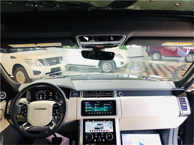 19款路虎揽胜行政版车内强大的功能并非体现在众多按键上,控制台顶端以及方向盘以牛津皮革包裹,无论是视觉效果还是质感都无与伦比。中央显示屏双画面技术可使驾驶者和乘客同时观看不同的画面。