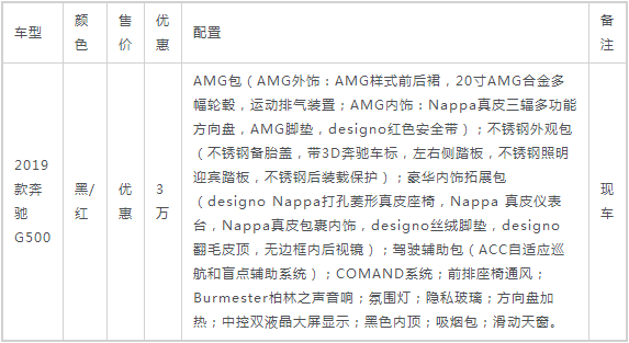 全新一代奔驰G级 (配置|询价)现车到店,优惠促销,购车优惠万元!!全新G级保留了延续39年的经典方盒子造型设计,硬朗的线条、出色的越野性能让它成为了很多消费者心目中的Dream Car。与上一代车型相比,它的外形做了一些调整,比如前格栅换装了三横幅式装饰,更换上全新的LED大灯,保险杠的设计也有明显的变化。据悉,它运用了全新的钢铝混合结构,质量相比现款车型下降170kg,但车身刚性却提升了55%。