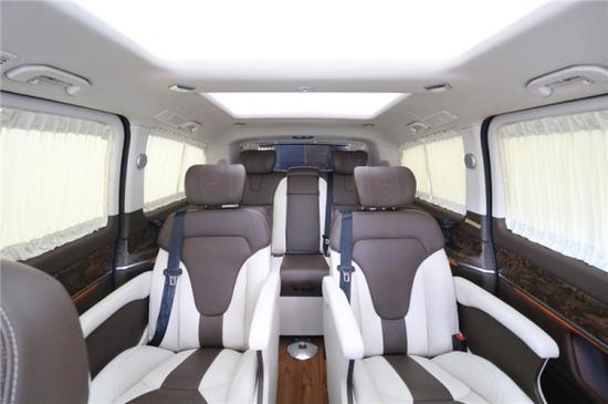 后舱的重新定制升级也是豪华感十足,采用了无隔断的7座布局。奔驰商务车v260新款后舱全景双天窗的设计营造出明亮宽敞的感觉,全车也标配了电动的隐私窗帘。
