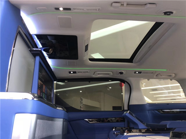 ● 整车立体大包围19款丰田埃尔法蒙娜丽莎总裁版、前后仓隔断式、隔断处增加一键式升降雾化玻璃、一键式可升降电视、音响功放、储物箱、车载冰箱。