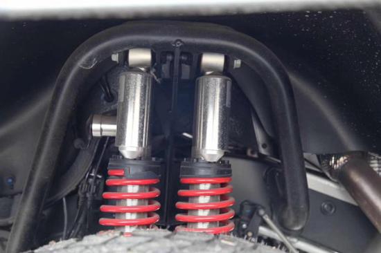 奔驰G550 4*4版是一部纯粹的全地形越野车,奔驰G550标志性的三肋镀铬格栅,复古的设计已成为一个时代的象征。拥有强度极高的非承载式车身结构,底盘有好几道加强梁进行加固,前后整体桥式悬挂系统粗壮无比,绝对是最强壮的民用车之一。