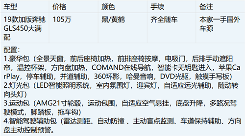 19款奔驰GLS450具有健壮的性情,也具有极致尊贵的奢华品格,持庞大气的内饰计划独具奢华之美。时尚的外观设计,强劲的动力性能,都足以让驾乘者爱不释手。它适用于出入各种场合,庞大的车身尺寸尽显居高临下之势,为您带来十足的优越感。以征服者之姿态开疆拓土,永不止步。