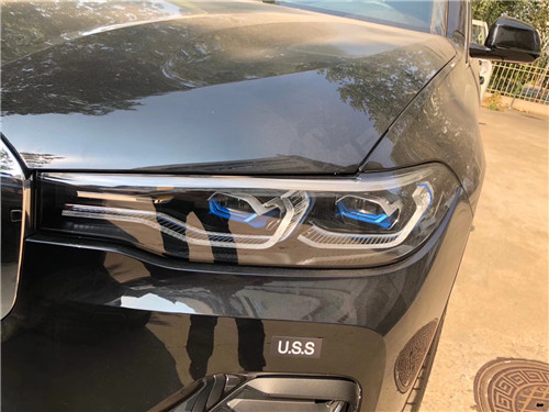 19款宝马X7新车采用巨大的双肾式前格栅,两个格栅之间的间距也变得更加紧密。同时,新车两侧细长的大灯组内部采用了激光式大灯,以及比例更加扁平的天使眼LED日行灯。在前保险杠部分,该车采用了巨大的贯穿式U形下部进气口,整体造型十分夸张。