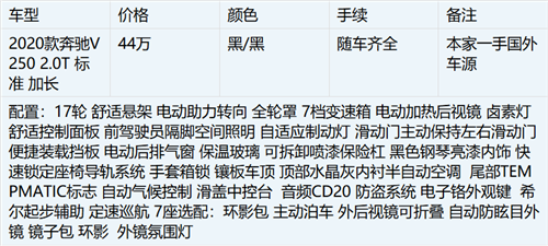 2020款平行进口奔驰V (配置|询价)250在奔驰V250在外观外型上延续了全新V级的设计理念,标志性的枪弹头式外观搭配平直的车身线条,慎重大气不言而明。保持了V级的全体外型,枪弹头的外观和平直的线条构成高端商务车的规范概括。