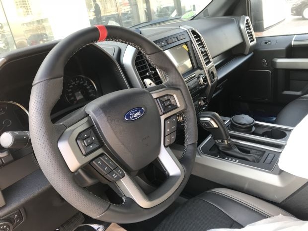 从各个角度看都很大,里面很舒服 2018年的猛禽比平均F-150宽6英寸(15厘米),低2英寸(5厘米)。这是足够宽,包括三个黄灯在黑色格栅,如要求的超级宽的车辆。凸起挡泥板覆盖更广泛的轮胎和车轮,它们已经间隔了15厘米,以增加高速的稳定性。 新猛禽的铝制机身建立在一个全箱框架上,是F-150系列中最坚固的。它包含更多的高强度钢,以更好地对抗弯曲和扭转在强硬的轨迹-并为猛禽的高性能悬挂提供坚实的锚点。 小屋既宽敞又实用。特别是在SuperCrew有四扇大门的地方。座椅宽,舒适,造型很好,驾驶位置非常体面。标准的灰色色调完成功能,虽然有点迟钝。可选的颜色口音是值得投资的。 猛禽拥有与其他F-150相同的仪表板,但中心块和8英寸触摸屏都是独家的,还有拨号盘、车载计算机和控制拖曳和全地形驱动的应用程序的菜单。一系列图标和显示会让您了解当前系统的状态和设置。这包括前轮转向半径,这是测量高达24公里/小时,是完美的补充前相机图像时,你正走向紧的角落。