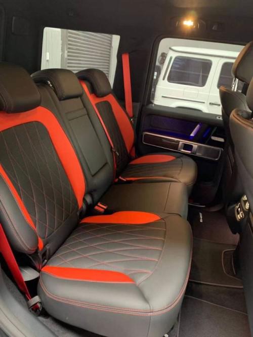 19款奔驰G63较之于现款车型,它的内饰发生了巨大的变化,融入了不少现款奔驰S级 (配置|询价)、E级的设计元素,从而变得更加豪华,而家族式的连屏设计则凸显了车内的科技感。当然了,经典的“三把锁”按键自然不会缺失,并且设置在中控台最为显眼的位置。而Edition one先行特别版内饰得碳纤维是黑红相间,而且座椅是菱形格座椅!