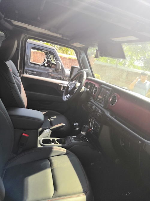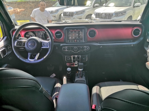 新款依旧保持了高高在上的车身结构,视觉上给人异常庞大的感觉,然而它的长宽高则是4882*1894*1848mm,轴距则是3008mm,这对于中大型SUV来说并不是非常夸张的参数,但是相比牧马人普通型号还是要大不少,主要还是依据越野用途设计。车身侧面是方正平直的造型,同时可以看出轮毂镂空面积变大。到店的是四门版,肯定要比两门版的更加方便,如果生活用车也比较适合。