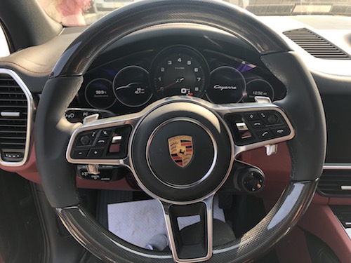 19款加版保时捷卡宴黑车红内 配置;大豪华包,(全景天窗 BOSE音响 智能卡 并道辅助 14项座椅调节 内部氛围灯 防眩目后视镜 电动方向盘 LED矩阵式大灯 PDLS动态照明 四区空调 前座椅通风 后座椅加热)红色真皮 降噪玻璃 电吸门 黑色高光行李架 黑色高光门饰条 底盘升降 运动组件 20轮43E 环车影像 彩标 前后头枕徽标 中央扶手箱徽标 碳纤维方向盘 前后排座椅通风 红色安全带 空气净化