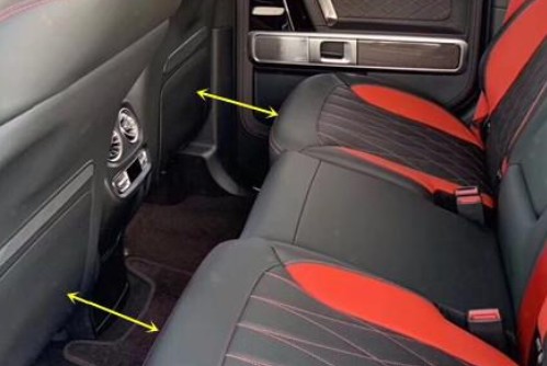 全新G63后座椅缝线和配色与前排保持一致,较长的坐垫对大腿的支撑更好,在宽度和高度上保留了老款的优势,对腿部空间也有所加大,靠背角度调节功能的加入值得肯定,长时间乘坐放缓靠背,可以更好的休息。