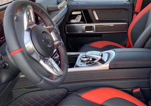 2019款奔驰G63配置:[全球限量顶级配置,全红菱形内饰最顶配] AMG碳纤维战斗方向盘 3万 法拉利碳纤维翻毛皮战斗方向盘,拥有法拉利赛道极速驾驶体验 AMG手工缝制高级内饰包20万 (AMG Nappa真皮砖石手工缝制座椅,Nappa真皮手工缝制操控台 气动座椅伴随转向左右支撑人体重心,通风加热运动按摩)G63最顶级限量版内饰! AMG限量63熏黑保险杠 约3万 AMG碳纤维内饰约7万 AMG红色菱形格手工缝制红内饰/红菱形后备箱 AMG碳黑交叉辐设计22寸锻造轮毂 约7万 AMG暗夜包 熏黑大灯 约8万 AMG 马力性能驾驶 宽屏驾驶仓 AMG主动式多向运动座椅包 迈巴赫大柏林Burmter环绕声系 约5万 ACC雷达测距自动刹车永不追尾! 私密玻璃 视觉辅助360度° 环车影像