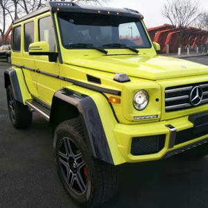 奔驰G550 4x4²是一款动感而全能的SUV,它完美融合了动型轿车的车身设计、高效动力和灵敏操控、SUV的越野安全,奔驰G550是一部纯粹的全地形越野车,粗犷的外观,标志性的三肋镀铬格栅,大大的奔驰车标非常醒目;硬朗笔直的车身线条完全是硬派越野的风格,车头圆形前大灯设计很复古。