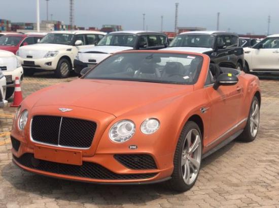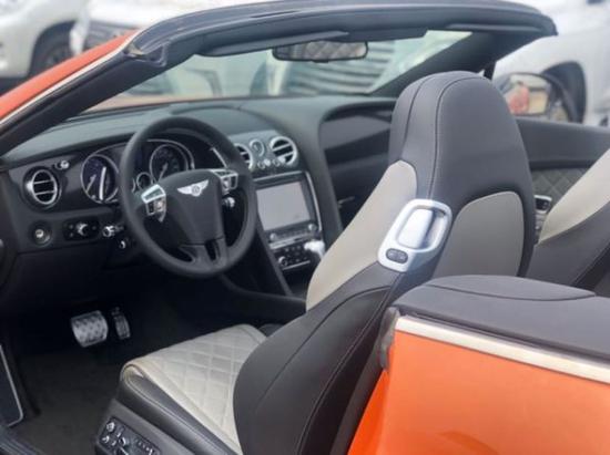 18款宾利欧陆敞篷GTCS,颜色:魅力橙/海豚灰配黑内饰/黑顶棚状态:现车手续齐配置:21轮,对比刺绣,方向盘手工对比色刺绣,穆勒包配定向运动轮,四季包,亮黑色涂装外后视镜,碳纤维装饰面板,可拆卸中控台储物盒,前座椅通风按摩,挡风片,ACC巡航系统,CD播放器,4G无线热点,备用胎,运动排气等