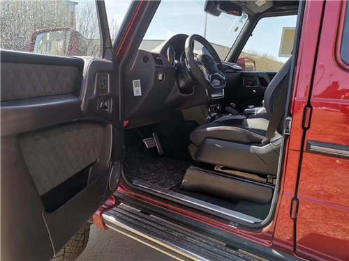 进入车内,4x4的整体设计布局,跟普通版G级 (配置|询价)保持一致,只是4x4增加了三种高级材质:第一是碳纤维装饰,应用在中控台、换挡基座和门板上面,而普通版G级是黑色钢琴漆装饰。第二是欧缔兰翻毛皮材质,应用在方向盘上面,跟G63 6x6的设计一致。第三是Dinamica微纤维材质,应用在座椅和门板上面,手感类似于翻毛皮,能增加摩擦系数,减少身体滑动,而普通版G级只有常规真皮。