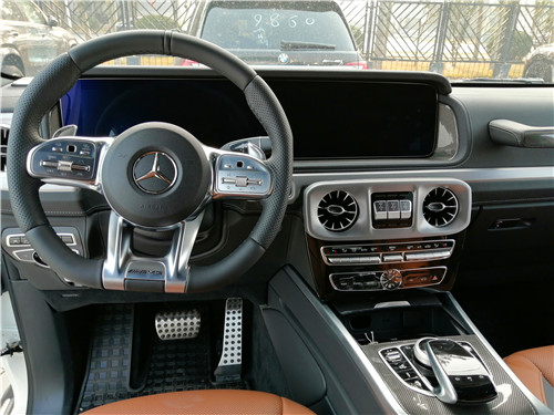 内饰方面,奔驰G63拥有宽敞充裕的车内空间和多种座椅布局方案,能够充分满足您对空间自由度的要求。中控台多处均采用碳纤维材料覆盖,带彩色TFT显示屏的AMG仪表盘、AMG主菜单和单独的挡位显示器以及采用白色照明的AMG门槛。