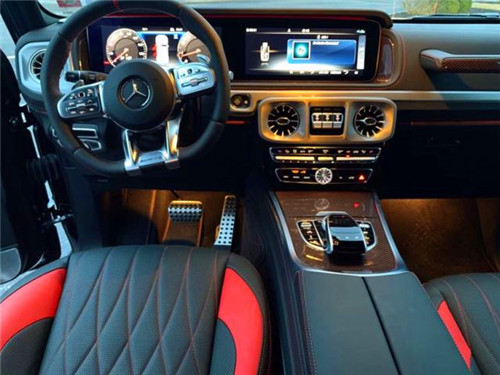 档次、质感和科技配置都明显提升全新奔驰G级 (配置|询价)的内饰相比老款有了明显的提升,采用了奔驰最新的双屏幕式设计,全液晶仪表盘和中控台屏幕都达到12.3英寸。同时内饰质感和工艺都有了很大的进步。较之于现款车型,它的内饰发生了巨大的变化,融入了不少现款奔驰S级 (配置|询价)、E级的设计元素,从而变得更加豪华,而家族式的连屏设计则凸显了车内的科技感。当然了,经典的“三把锁”按键自然不会缺失,并且设置在中控台最为显眼的位置。