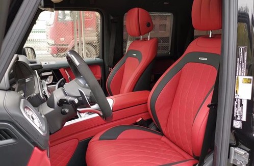 2019款梅赛德斯奔驰G63在内饰方面其实才全新一代G级最大的变化。新车换上了奔驰最新家族式的内饰设计,这无疑让G级拥有了旗舰级应有的豪华感,不过经典的副驾驶席扶手和三把锁的开关键依旧延续了经典设计,并设置在中控台最显眼的位置。其中双12.3英寸高清屏,虚拟仪表盘与中控液晶屏融为一体,视觉上形成一个宽屏驾驶舱,中部的涡 扇式空调出风口也颇具设计感,还大量采用了皮革的包覆。