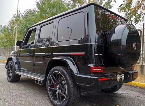 2019款奔驰G63 AMG与普通版车型相比,奔驰G63 AMG外观采用了大尺寸前保险杠、全套车身动力套件、奔驰G63 AMG还配备了镀铬中网和V12 BITURBO标识彰显这款车的身份。奔驰G63 AMG采用AMG车型特有的轮拱饰条、不锈钢迎宾踏板以及不锈钢防擦条,挡泥板上的“V8 BITURBO”标识以及后门上的“G63 AMG”铭也十分醒目。