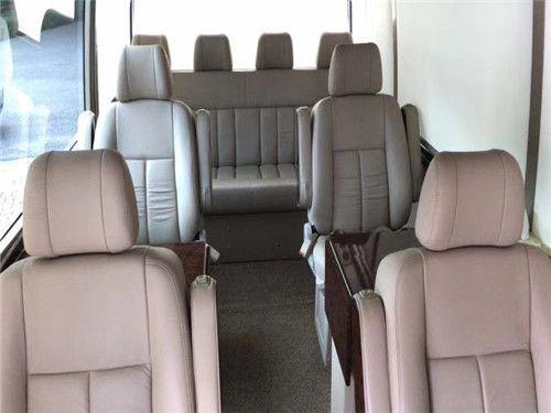 12、丰田柯斯达/丰田考斯特首长席航空座椅:高档首长座席由真皮航空座椅构成,根据人体工程学设计的弧度,使人体乘座更加舒适、贴切。让更贴合乘客的移动办公需求,让领导感受超乎寻常的尊贵感和舒适感。