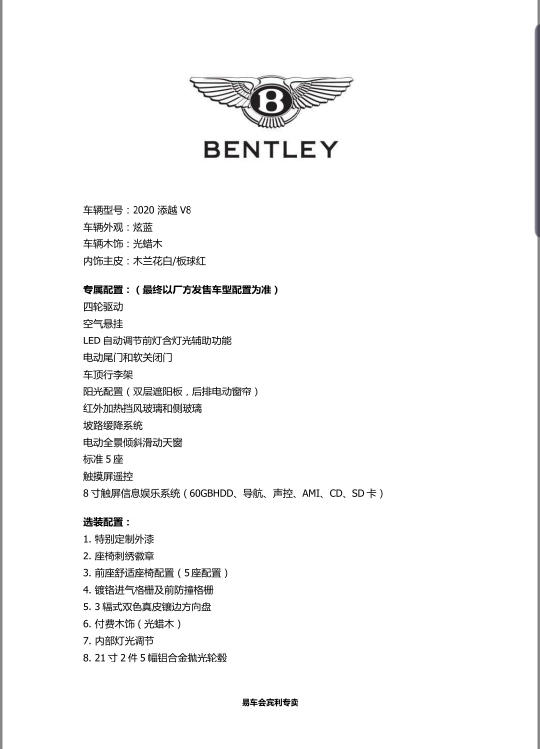 [车型]:2020款宾利添越4.0T汽油版