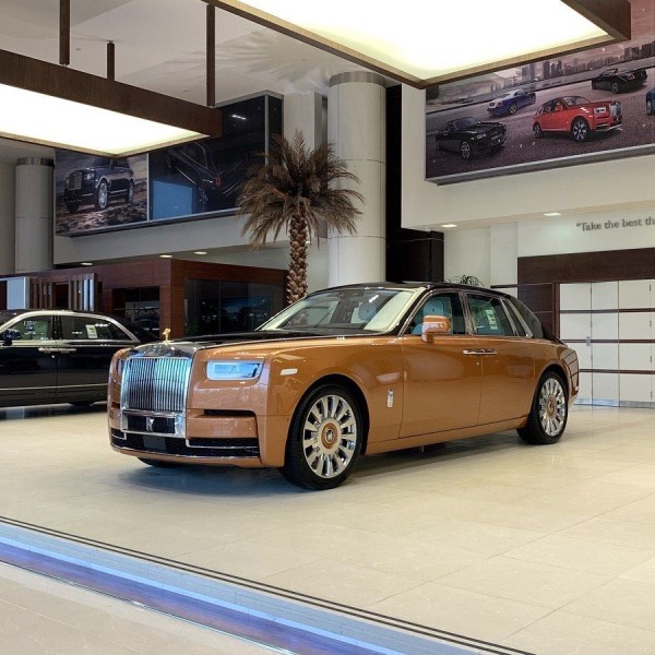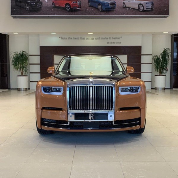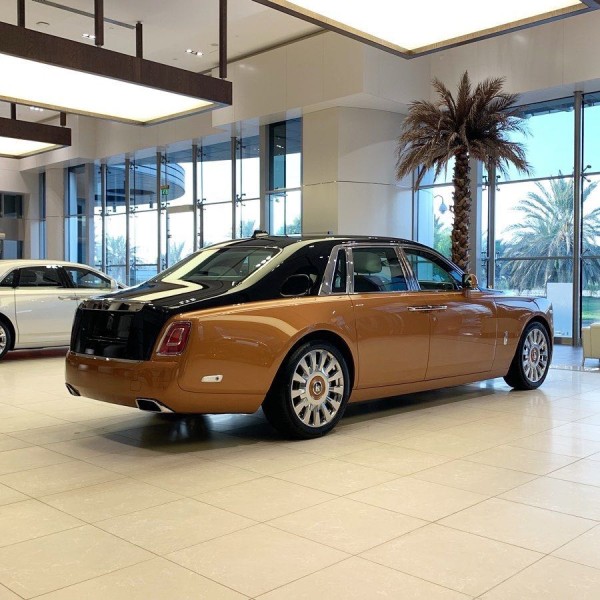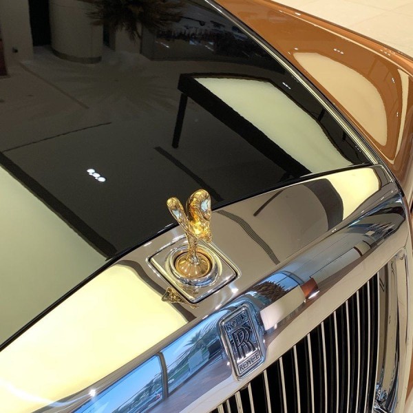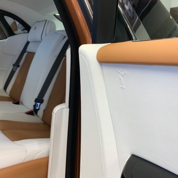 劳斯莱斯幻影加长版,4门4座版本 6.7T,V12,571匹马力,8速手自一体,双涡轮增压,长*宽*高5990*2018*1656,轴距3772,时下最流行的爱马仕橘色缝线搭配曜石黑内饰,绝无仅有的搭配。通过对铝的完美使用,庞大的车身控制在2745KG重,并采用全新的N74B68A双涡轮增压6.7T V12发动机,最大功率420KW,在1700转下就可以发挥最大扭矩900NM,与八速手自一体变速箱的的通力合作,使新幻影0-100Km/h的加速仅为5.4秒
