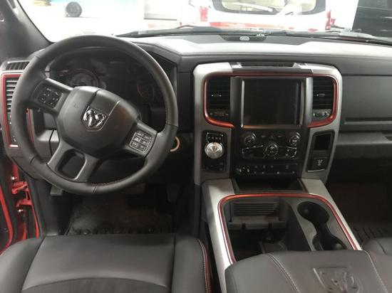 天津港19款道奇公羊叛逆者5.7LV8宽大的中控台和仪表板也都有红色装饰条勾勒,视觉效果相当抢眼。同时配有旋钮式的换档操作。多功能方向盘加热和前排的座椅加热能让人们轻易的应付了寒冷时节。