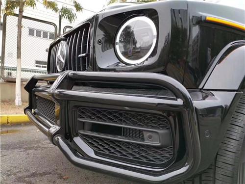 奔驰G作为奔驰旗下最强悍的SUV,一直以来都是大多数男人的梦,但是价格上的高昂也只能让大多数的人看看眼瘾了!图中这款车就是全新的19款奔驰“G63 (配置|询价)”。全新亮灰色的配色更是让这部车气场十足!正面上的进气格栅依旧是奔驰G家族式的风格,简单但不失霸气,两侧的炮眼大灯基本上秒杀统计人的任何车辆,而这组大灯则是由银色的日间行车灯所包围,霸气的前包围也彰显出了这部车的硬派感。