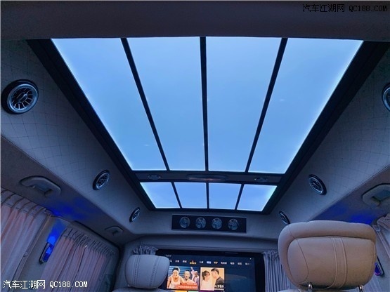 奔驰V260改装高顶全隔断迈巴赫VST680商务车灯光设计也是映入眼帘采用迈巴赫六宫格顶灯和星空顶灯搭配,光纤氛围灯营造宁静安详的休息气氛。