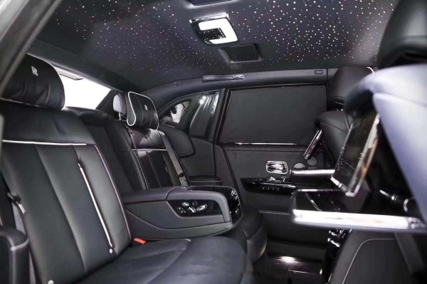 配置简介: 星空顶 全新2018款劳斯莱斯幻影加长版,4门4座版本 6.7T,V12,571匹马力,8速手自一体,双涡轮增压,长*宽*高5990*2018*1656,轴距3772。整车4年不限公里质保及保养 黑色车身彰显尊贵的身份,时下最流行的爱马仕橘色缝线搭配曜石黑内饰,绝无仅有的搭配。通过对铝的完美使用,庞大的车身控制在2745KG重,并采用全新的N74B68A双涡轮增压6.7T V12发动机,最大功率420KW,在1700转下就可以发挥最大扭矩900NM,与八速手自一体变速箱的的通力合作,使新幻影0-100Km/h的加速仅为5.4秒。 以黑色为主色调的内饰,搭配阿马尼亚克-暗橘,尊贵又不显庸俗。漫天星的顶棚,让乘坐者仿佛身临星空的怀抱下,art-deco反光镜带有梦幻的感觉。纯羊绒的地毯的触感更是无可挑剔。 特色配置:ACCENT内饰环境,定制时钟,座椅滚边(阿马尼亚克-暗橘),画廊Rivebstste(RSG),黑钢琴木(Piano Black),后排冷藏箱子,舒适入车,后排娱乐系统,野餐桌,黑色绒制车尾箱,前排座椅按摩,星空顶。