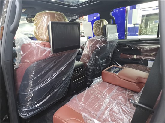 超大的车身带来的是,拥有可容纳最多达8位乘客的宽裕乘坐和行李存放空间。LX570加规版后排座椅宽大,足以满足身高195cm的贵宾,第二排座椅的电动滑动式设计,为第三排乘客提供更宽敞的腿部空间,同时车内座椅可以根据车主需要进行多种变换。