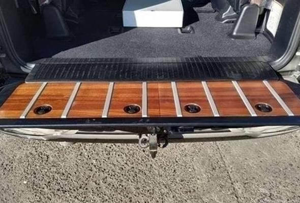 19款中东版酷路泽5700顶配的外观与其他配置的5700大有不同,外观带有前后大包围,前脸镀铬条中镶嵌流水灯,20寸的抛光轮毂,尾翼高位刹车灯,全车镀铬装饰,而且外观的前车标是镜面的,这就是ACC雷达测距系统也叫自适应巡航系统,尾部是VXR标识,这是顶配的象征。