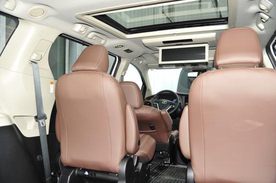 桃木镶嵌的中控台更显格调高雅,方向盘集成多种功能,操作便利。方向盘集成多种功能,操作便利减少对安全的影响并且带有语音控制。丰田塞纳车舱宽阔,安静,座椅全部采用双色真皮。丰田塞纳它是这些中型MPV车型中唯一一款采用了全轮驱动方式的车型。只有当前轮打滑的时候,才会将动力传递给后轮,从而既降低了油耗又提升车辆的通过性和稳定性。丰田塞纳商务车在配置上增加了DVD、倒车影像、导航、氙气大灯和不锈钢镀铬装饰。