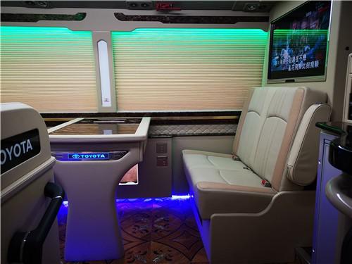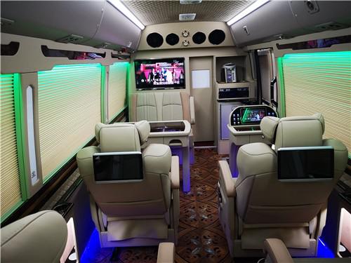 丰田考斯特12座改装商务车在内饰的其他的一些配置上也有着自己的独特和尊贵。车载冰箱的个性化设计实用而又贴心,不管是在任何时候我们都可以在冰箱内保存我们想要的食物或者水果。在地毯的设计上,丰田考斯特12座改装商务车更加注重了商务车档次感,豪华的游艇木地毯舒适的阻燃式通道地毯,丰田考斯特改装商务车在内饰的设计上都可以根据我们的需要完成个人的私人化定制。