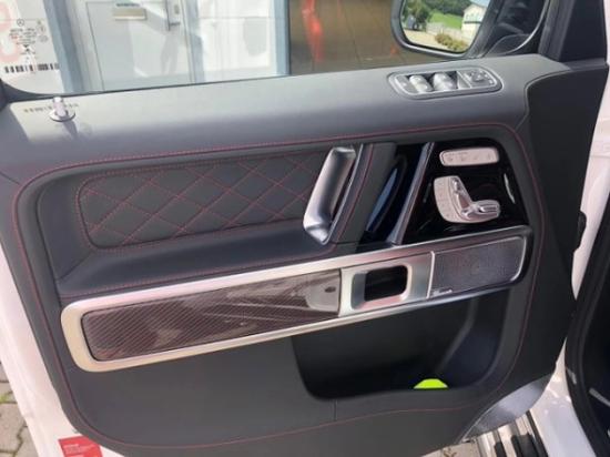 内饰方面其实才全新一代G级 (配置|询价)最大的变化。新车换上了奔驰最新家族式的内饰设计,这无疑让G级拥有了旗舰级应有的豪华感,不过经典的副驾驶席扶手和三把锁的开关键依旧延续了经典设计,并设置在中控台最显眼的位置。其中双12.3英寸高清屏,虚拟仪表盘与中控液晶屏融为一体,视觉上形成一个宽屏驾驶舱,中部的涡扇式空调出风口也颇具设计感,还大量采用了皮革的包覆。另外,新一代G级还对驾乘空间也进行了优化。