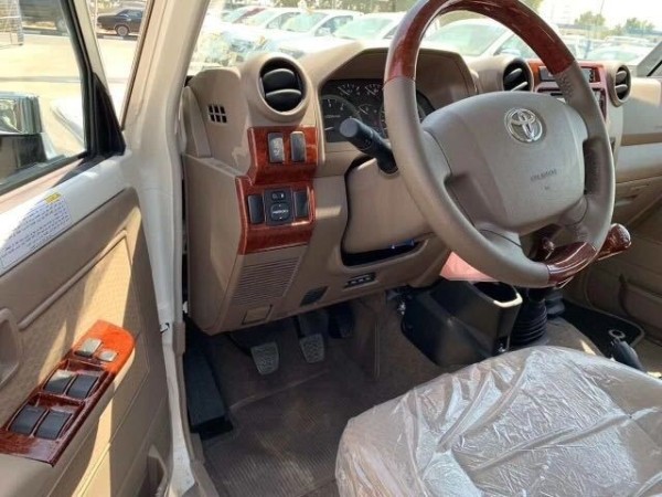 高配 复古前脸, 19款丰田LC76 柴油V8 4500排量 柴油D4D,ABS VSC HAC ATRC EBD EST 双气囊 空调 涉水喉 前后差速锁 绞盘 雾灯 宽体轮眉 挡泥板 踏板 电动车窗 电动门镜 电动天线 轴头锁 脚垫 彩条 外部温度显示 130升油箱 织物座椅 外观镀铬套件 音响系统 拖钩 电动天线 桃木 备胎罩 油桶。
