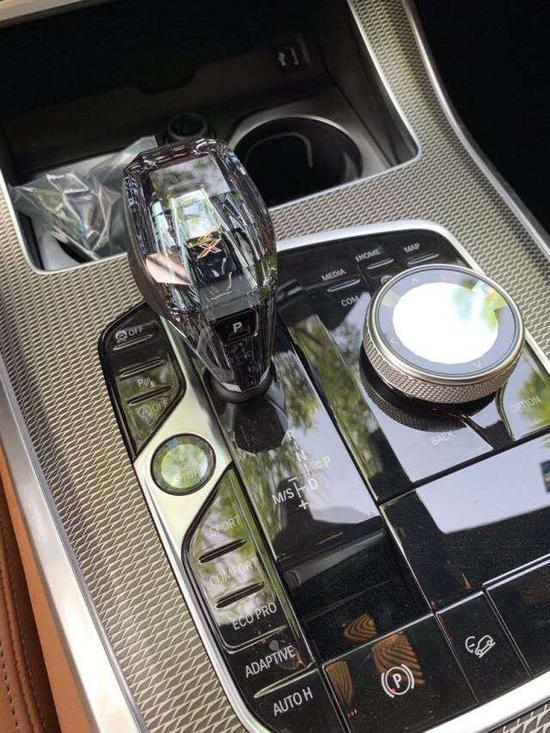 当第一批现车到港的时候,我们同时也拿到了一张厂家随车的详细参数配置表。当时我们就发现了一个有趣的问题,老款标配的实木内饰在新款上变成了选配。这是为什么呢?当我们打开车门看到新款X5的内饰之后这个问题便有了答案,19款X5在内饰材料上面除了提供实木内饰之外还新增了一项水晶内饰组件。此配置为单选项,最突出的地方就是中控台位置的施华洛世奇水晶档把了,非常的亮眼。