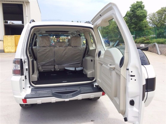 19款三菱帕杰罗经典V97,3.8L/V6 3.8L 七座88升油箱18轮 全车黄金包 无钥匙进入 胎压监测,蓝牙, 五速手自一体变速箱 超选四驱 4轮ABS+EBD,智能空调(后排调节按钮)全景狩猎式电动天窗 真皮 氙灯 大灯清洗 主副电动座椅调节 冰箱 北美来福音响 倒影 倒车雷达 桃木多功能方向盘 巡航定速 双差 前后小拖钩,玻璃天线,镀铬外门把手 后挂备胎 行李架 脚踏。