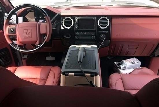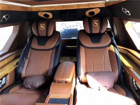 新款乔治巴顿战车的内饰可以用“奢华”、“精致”、“体贴”来形容。后舱采用了豪华商务车布局,内饰色调以米白色。酒红色两种搭配,北美皇家桃木做以装饰;前、后舱之间设有隔屏,配以22寸超薄显示器,在最大程度上保证了后舱乘客的私密性的同时又可以在旅途中享受影音快乐;舒适独立的多功能电动真皮座椅,让您置身其中会忘记自己身处外观如战车般的乘坐舱内。