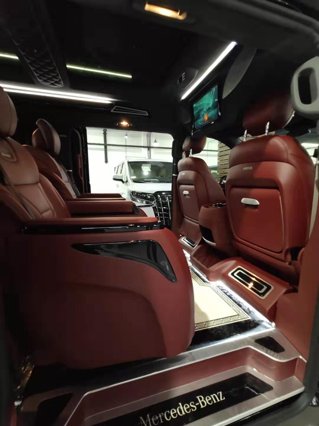 当您进入奔驰V260L改装商务7座后舱,立刻就会被它的豪华绚丽而征服。
