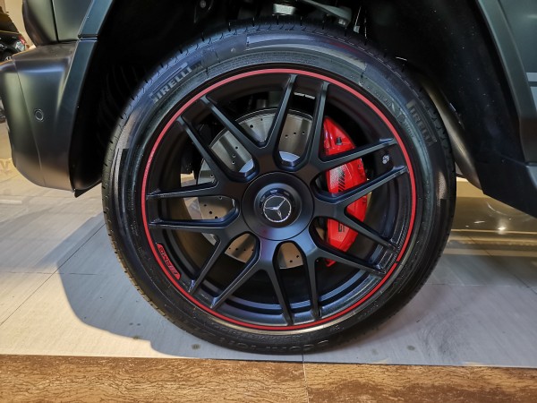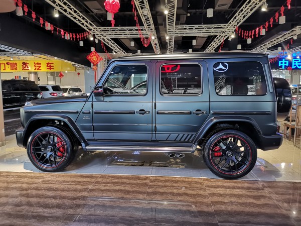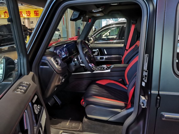 配置:9速AMG变速箱,磨砂黑金属漆,黑色AMG独家黑红双拼内饰,干椒红碳纤维饰件,红色安全带,可调阻尼底盘,主动车道保持,主动刹车辅助,AMG红色卡钳 ,雷达测距,柏林之声3D音响,电动天窗,风挡玻璃加热,超细纤维内饰(鹿皮顶),64色氛围灯,360环影,停车辅助(中规智选套装,选装加24200),几何多光束LED大灯(中规G63选装加19000元),AMG暗夜包,增强座椅舒适包(多轮廓座椅,通风按摩),AMG高性能Nappa真皮方向盘,AMG驾驶包时速240公里更加运动和灵活的驾驶体验(底盘更运动 更灵活最高时速更高,中规无法选配)