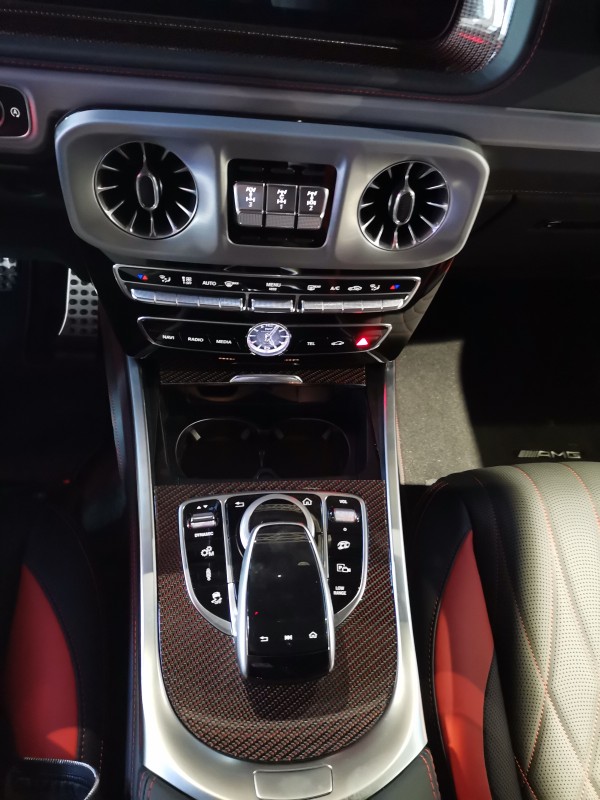 2019款奔驰G63 内饰方面其实才全新一代G级最大的变化。新车换上了奔驰最新家族式的内饰设计,这无疑让G级拥有了旗舰级应有的豪华感,不过经典的副驾驶席扶手和三把锁的开关键依旧延续了经典设计,并设置在中控台最显眼的位置。